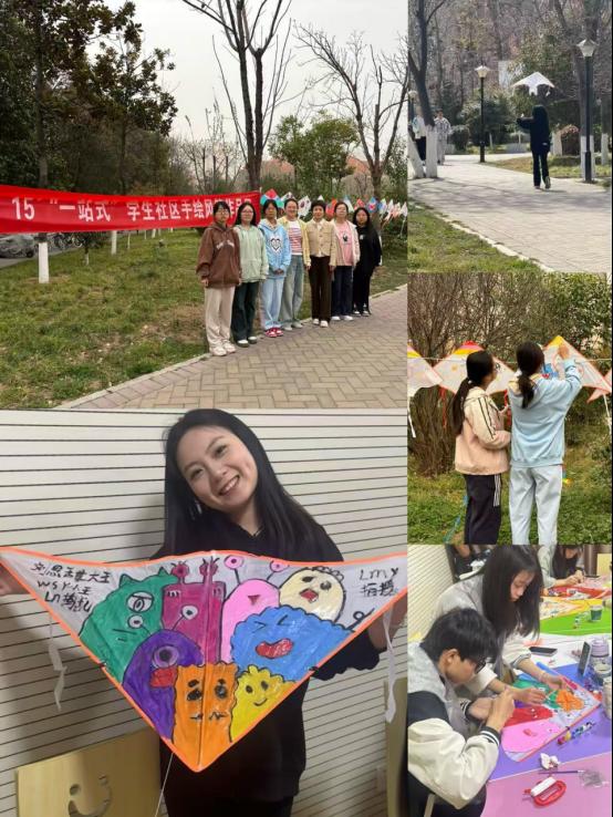活动当天,同学们在社区活动室围坐一起,用画笔在风筝上随心创作。有的刻画卡通人物,有的勾勒春日风景,有的描绘美好心情,大家热情高涨,现场欢声笑语不断。2023级学生刘思甜表示,“上大学后还能像小孩子一样玩,太好了!我很喜欢和同学们在一起,很吵但很有趣。”手绘完成后,大家带着自己的作品在校园里肆意放飞。阳光明媚,微风轻拂,三三两两,一收一放间都是同学们青春的笑脸。