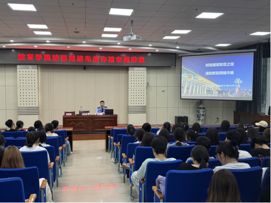 6月3日晚,学院邀请宝鸡市公安局高新分局反诈中心民警王旌臣在高新校区木铎厅做了题为《时刻绷紧防范之弦 谨防新型网络诈骗》的专题讲座。讲座由学院党委副书记屈金梅主持。