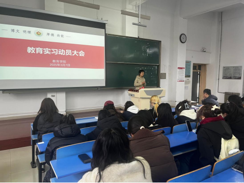 3月7日上午,我院在立心楼119教室举行2022级师范生教育实习动员大会,此次大会旨在深化学生对教育实习内涵的理解,全方位提高学习成效,为实习与就业夯实基础。学院党委副书记屈金梅,学院副院长赵亮,学院教学秘书党水纳老师及200余名实习学生参加会议。