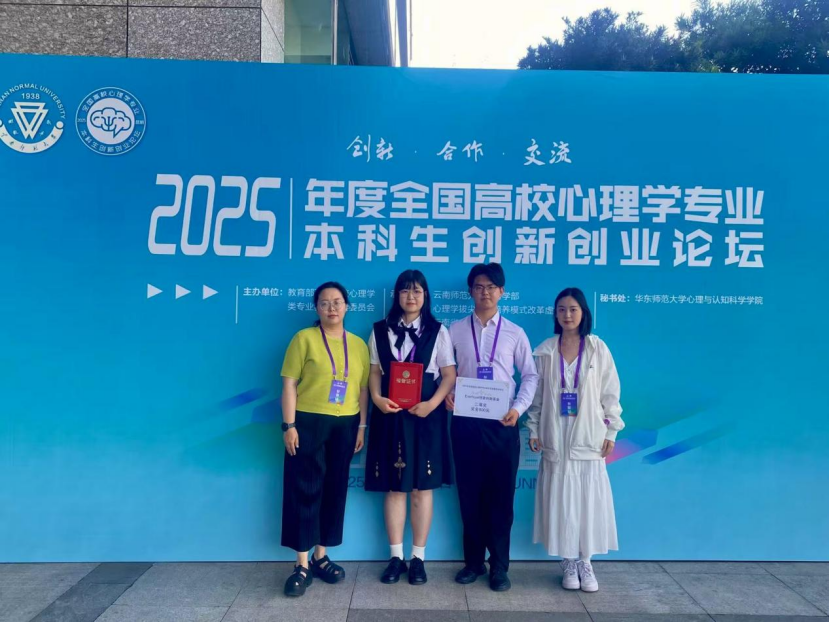 近日,2025年度高校心理学专业本科生创新创业论坛决赛落下帷幕。9428cn太阳集团应用心理学专业2023级李怡欣和2022级江理文的《解忧事务所APP》荣获产品设计二等奖,23级汝晶和苏乐凡的作品《小丑Joker——探索边缘型人格障碍》荣获短视频科普三等奖,许婧老师荣获优秀指导教师。