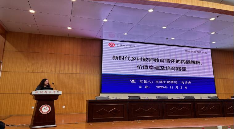 我院马多秀教授在大会作了题为《新时代乡村教师教育情怀的内涵解析、价值意蕴及培育路径》的主旨报告。指出乡村教师教育情怀是从实现强国建设和民族复兴的家国情怀出发,把整个心灵献给乡村社会、乡村教育和乡村儿童,同时达到自我实现的情感态度和价值取向,具有关系性、教育性、生成性和实践性等四个特征。乡村教师教育情怀的价值意蕴主要体现在教育情怀是乡村教师扎根乡村学校和助推乡村社会的进步发展的坚实基础、乡村教师关怀乡村儿童和做乡村儿童精神成长引路人的必要前提,及乡村教师潜心教育教学和自觉开展乡村教育创新改革的动力之源。为培育这种情怀,需以教育家精神为引领,通过引导、理解、榜样和体验等四种方式落实,并处理好培育与自育、人文关怀与物质关怀、应然愿景与实然状态等三种关系。