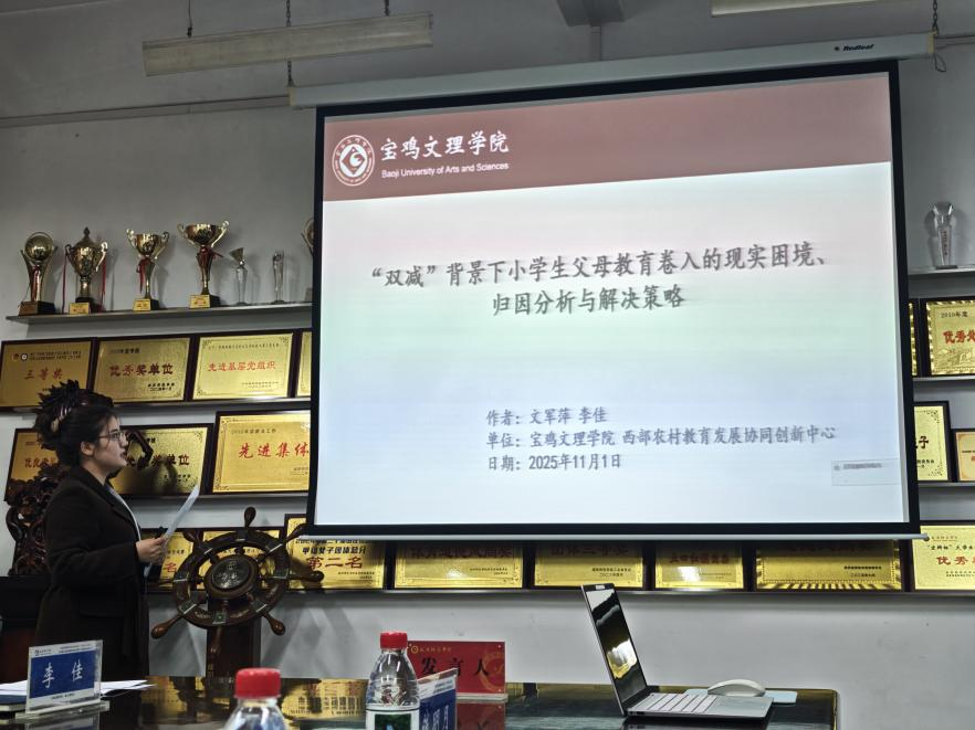 在11月1日下午的教师论坛上,我院文军萍副教授和研究生李佳作题为《“双减”背景下小学生父母教育卷入的现存困境、归因分析与解决策略》的报告,深入剖析了父母教育卷入的现实困境及其影响因素,并提出针对性优化路径,报告聚焦教育实践中的真实需求,为家校社协同育人提供理论与实践参考。