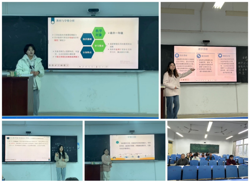 比赛现场气氛热烈而紧张,7名参赛选手依次登台展示。围绕板书测试、即兴演讲、说课、模拟授课、回答评委提问等核心环节展开激烈比拼。评委们按照评分标准,从各个环节对参赛选手的表现进行全面、细致的点评与打分,既肯定了选手们在教学技能上的进步与创新,也针对教学设计的逻辑性、技术应用的适切性、课堂互动的深度等方面提出了宝贵的改进建议。经过激烈角逐,最终评选出2名学生代表教育技术学专业参加学校举行的教学技能大赛。