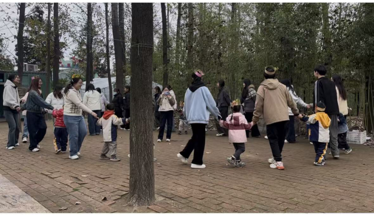 下午,幼儿用落叶制作了王冠,举行了一场温馨而欢乐的音乐会。孩子们带来了唱歌、跳舞等丰富多彩的表演,见习生们也积极参与其中,与孩子们一同合唱、互动游戏。