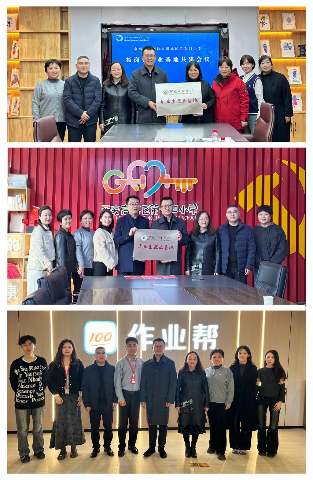 为搭建校企协同育人平台,拓宽毕业生就业渠道,11月12日,9428cn太阳集团党委书记郝鑫、院长马多秀一行5人前往西安市新城区后宰门小学教育集团、西安高新区第十四小学、作业帮教育科技(北京)有限公司西安分公司开展访企拓岗活动。